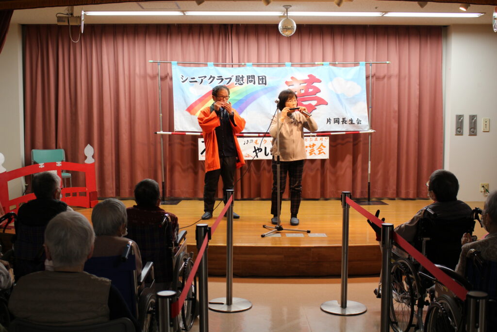 片岡長生会のシニアクラブ慰問団”夢”の方々にクイズや歌、踊りを披露して頂きました!!